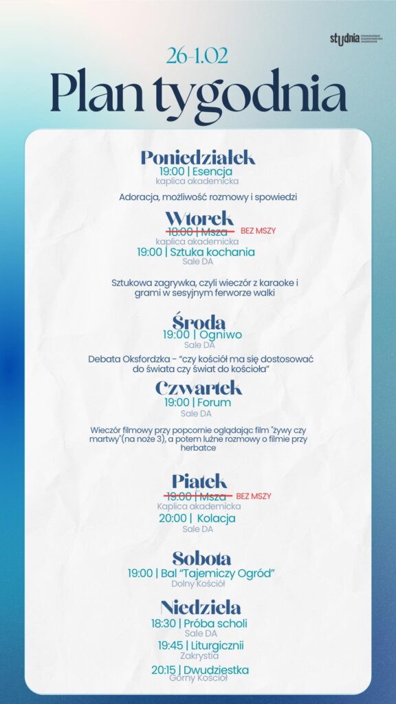 Plan tygodnia 26.01 – 01.02.2026