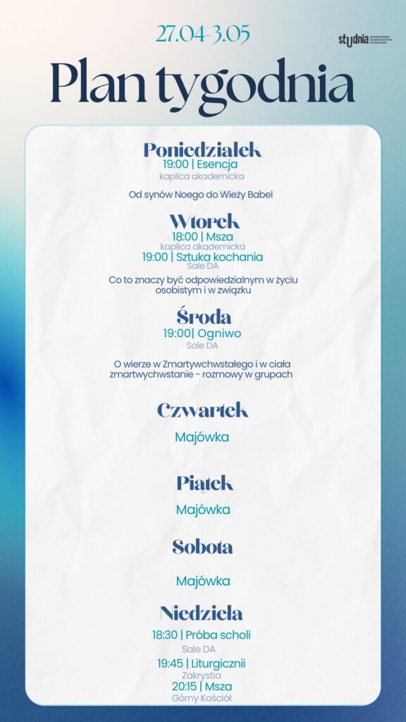 Plan tygodnia 27.04 – 03.05.2026